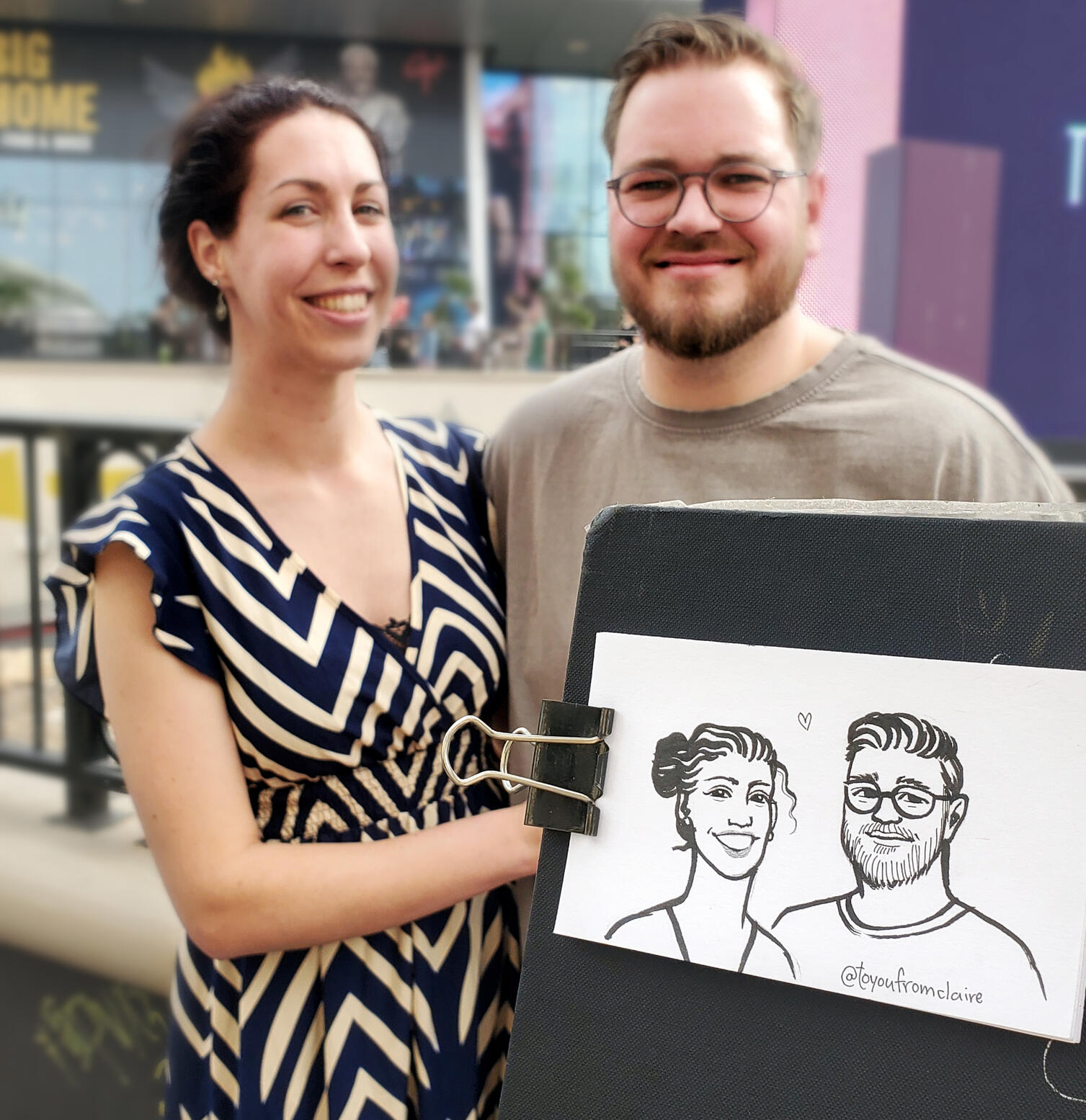 Over the last year, I've drawn roughly 3,000 people on the streets of Las Vegas. As an artist, I'm fast, accurate, and confident in any setting. Beyond being experienced with every kind of appearance, regardless of age, shape, or color, I'm passionate about connecting with everyone I draw. I can promise a friendly rapport and quality drawings that bring brightness to any occasion. Plus, I've never met anyone else that does exactly what I do!How do I get a quote?